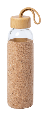 Glazen fles met huls van natuurkurk, bamboe deksel en draagriem, 500 ml. Niet geschikt voor koolzuurhoudende dranken.