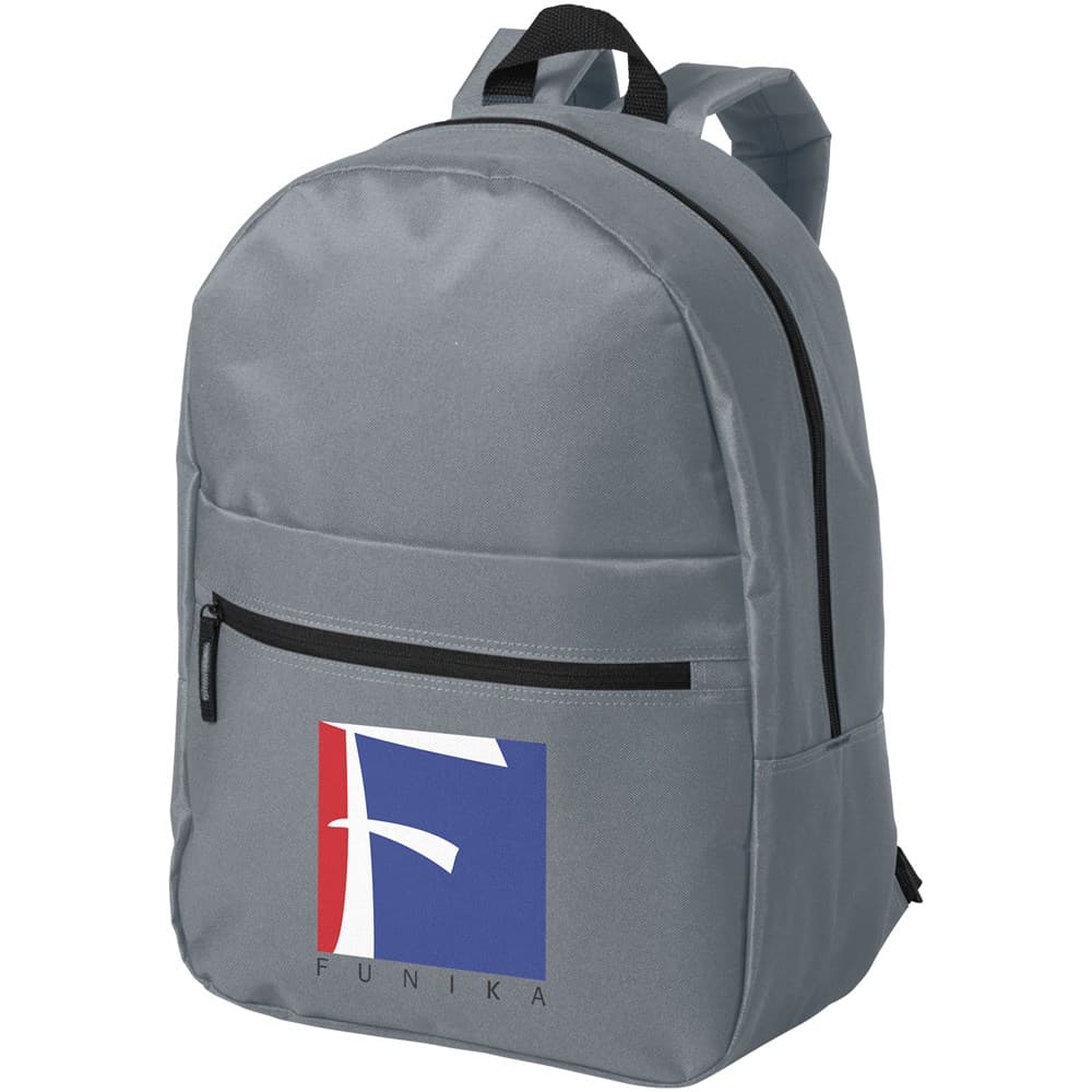 De Vancouver rugzak is een eenvoudige rugzak met vele mogelijkheden voor het bedrukken van een logo of andere bedrijfsboodschap. De tas is gemaakt van 600D polyester, een sterk materiaal geschikt voor rugzakken van hoge kwaliteit. De tas heeft een hoofdvak met rits voor de grote spullen, terwijl het voorvak met rits handig is voor de kleinere spullen. Dankzij de verstelbare gewatteerde schouderbanden past deze rugzak elke volwassene of kind. Daarnaast is de Vancouver rugzak gemakkelijk te dragen via het handvat aan de bovenkant.