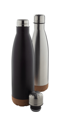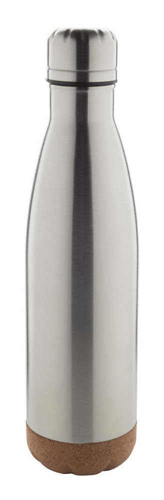 Dubbelwandige roestvrijstalen, vacuüm geïsoleerde fles met kurkbodem, 500 ml.