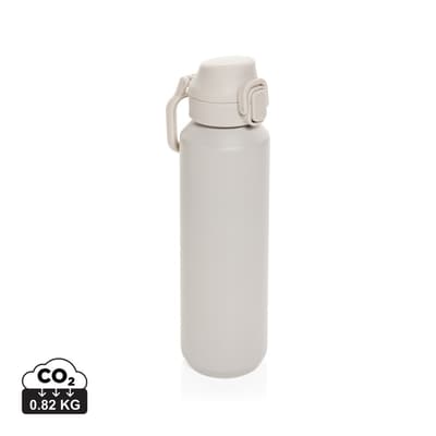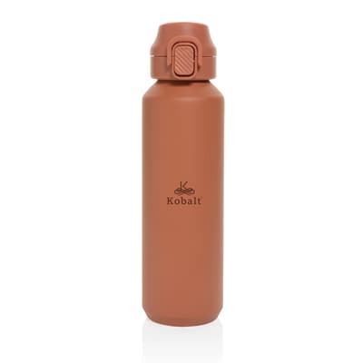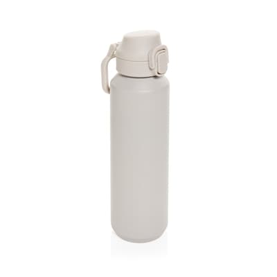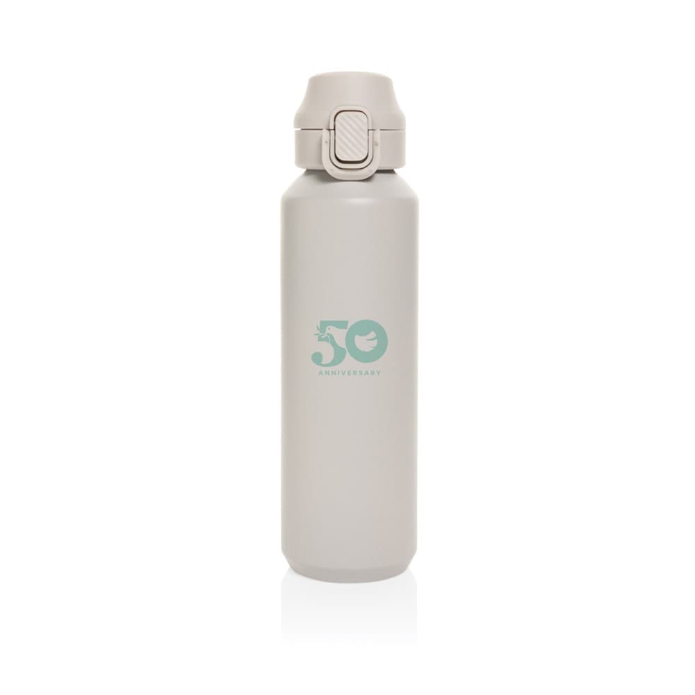 De Via RCS-fles is gemaakt van gecertificeerd gerecycled 304 staal. Deze waterfles heeft een enkelwandige constructie met een uniek schroefdeksel dat vergrendelbaar en lekvrij is. Bediening met één hand: druk om het deksel te openen en eenvoudig te drinken. Alleen geschikt voor koude dranken. Alleen handwas. Gemaakt met RCS (Recycled Claim Standard) gecertificeerde gerecyclede materialen. De RCS-certificering garandeert een volledig gecertificeerde toeleveringsketen van de gerecyclede materialen. Totaal gerecycled materiaal: 73% van het totale gewicht van het product. BPA-vrij. Verpakt in bulk. Inhoud: 600 ml.