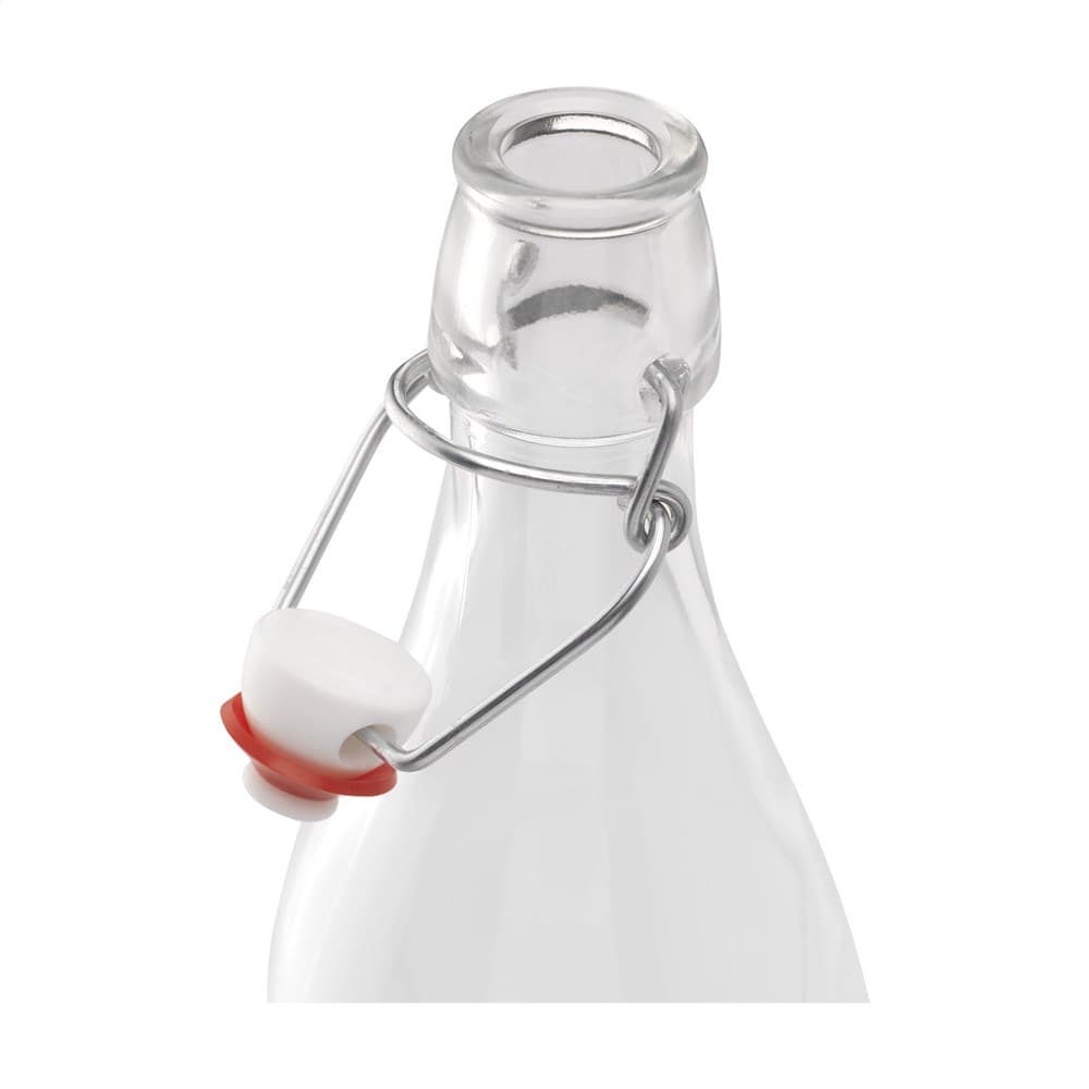 Multifunctionele, herbruikbare beugelfles van helder kwaliteitsglas. Af te sluiten met een handige beugeldop. Deze glazen fles is ideaal voor het schenken van water, limonade of wijn. Maar ook te vullen met olijfolie, kruiden of zaden. Uitermate geschikt voor alledaags gebruik of voor gebruik in de horeca. Inhoud 1.000 ml. Made in Italy.
