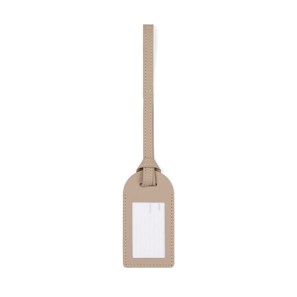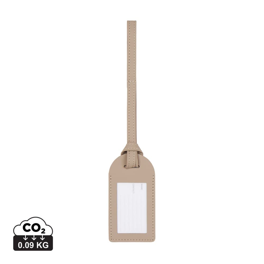Bagagelabel gemaakt van gerecycled, Italiaans leerafval en natuurlijke binders. Een product van het