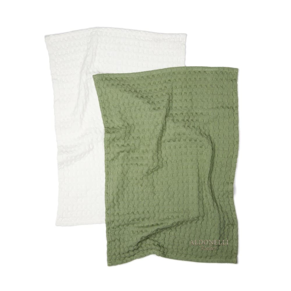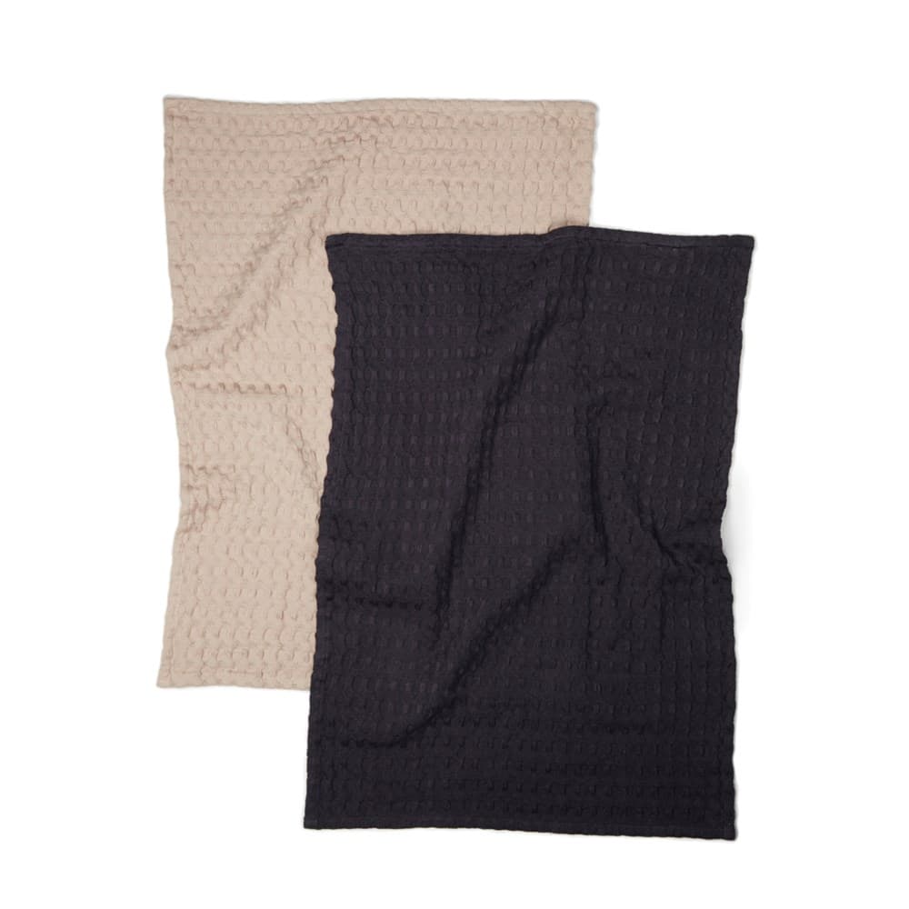 Een set van twee theedoeken gemaakt van 100% katoen. De theedoeken hebben een wafelstructuur en combineren geweldige looks met kwaliteit - perfect voor het schoonmaken van de keuken of het afdrogen van je handen.