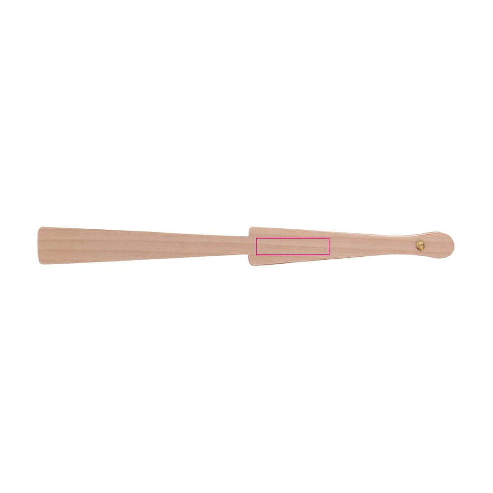 Waaier van hout & R-PET. Verkrijgbaar in verschillende felle kleuren met houten handvat; ideaal voor buiten evenementen en hete zomerdagen.