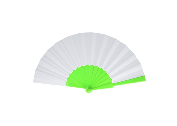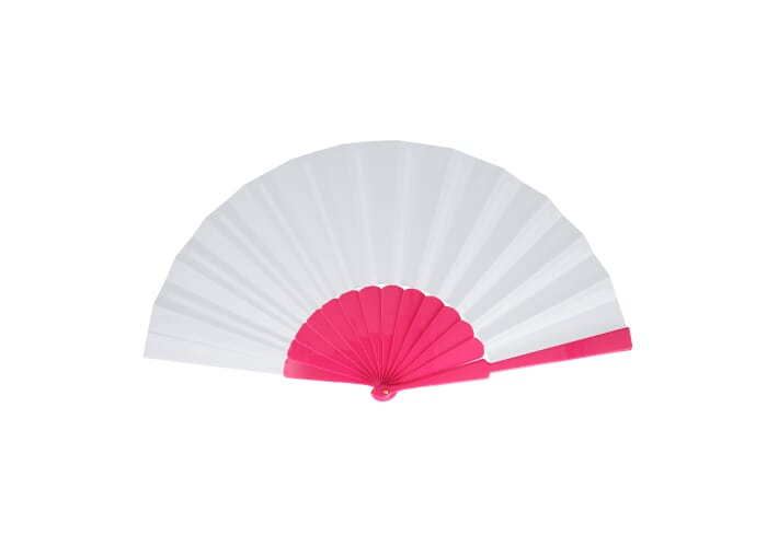Waaier van kunststof en polyester. Verkrijgbaar in verschillende felle kleuren, ideaal voor buiten evenementen en hete zomerdagen. Perfect voor waaiers bedrukken.