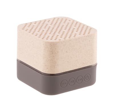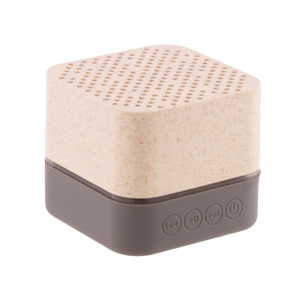 Bluetooth speaker in ecologische tarwestro kunststof behuizing met rubberen onderzijde, multicolor LED-verlichting en ingebouwde oplaadbare batterij. Met handsfree bellen en micro SD-spelerfuncties. Inclusief USB-oplaadkabel.