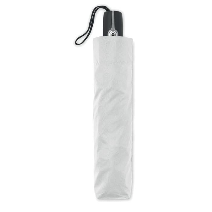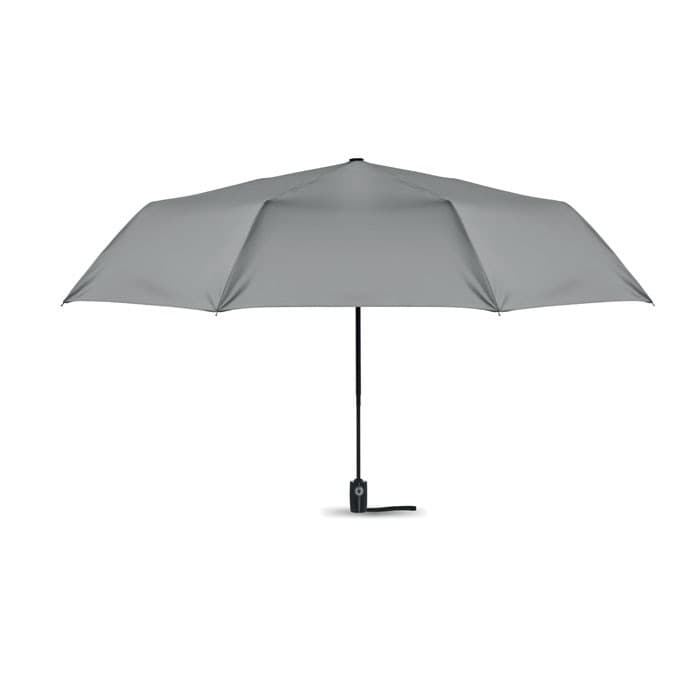 Windbestendige 27 inch 3-voudig automatisch openende/sluitende paraplu. 190T pongee materiaal, zwart beplaate stalen steel. Glasvezel baleinen, zwart beplaat binnen frame. Zwart PP handvat met knop. Met bijpassende tas.