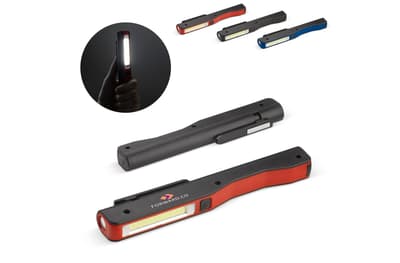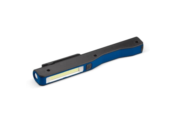 Handige zaklamp in fakkel design. Met vernieuwende COB technologie waarbij meerdere LED lampjes gecombineerd worden tot één fel licht. Dankzij de magneet in de clip eenvoudig op te hangen. Inclusief batterijen.