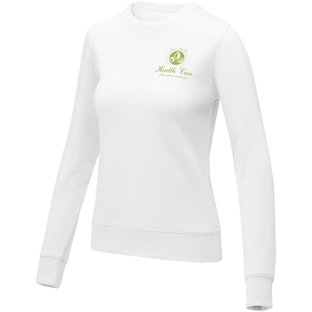 De Zenon dames sweater met ronde hals - combineert comfort met een klassiek ontwerp. Gemaakt van een 240 g/m² mix van katoen en polyester. Het klassieke ontwerp met ronde hals wordt geaccentueerd door plat gebreide ribdetails aan de kraag, manchetten en onderkant, voor een goede pasvorm en een vleugje verfijning. Bovendien kun je de binnenkant van de trui voorzien van een persoonlijk merk of persoonlijke label. De geborstelde binnenkant voegt een extra laag gezelligheid toe, waardoor hij perfect is voor koudere dagen. Met zijn doordachte ontwerp en hoogwaardige materialen is de Zenon trui een veelzijdige essential die een vleugje individualiteit toevoegt aan je look en tegelijkertijd zorgt voor maximaal comfort. Deze sweater is ontworpen met een getailleerde vorm voor een vrouwelijke look.