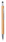 Bamboe balpen en touchscreen tip met metalen clip en punt. Blauw schrijvend.