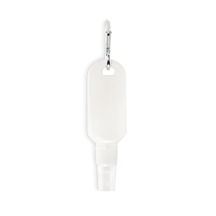 Zonnebrand spray SPF25 met karabijnhaak. Inhoud: 30 ml.