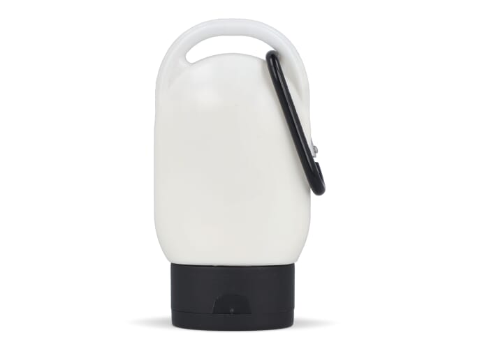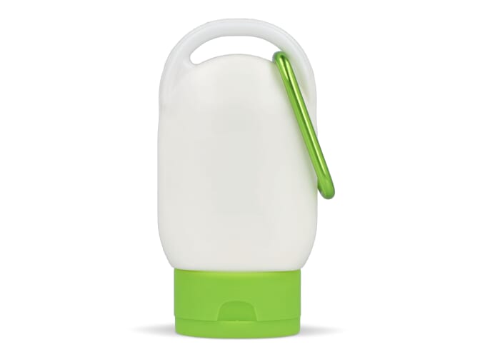 Handige SPF30 zonnebrandcrème in een compacte verpakking met karabijnhaak. Gemaakt van gerecycled kunststof. Eenvoudig aan een tas te bevestigen – ideaal voor festivals, buitenactiviteiten of onderweg.